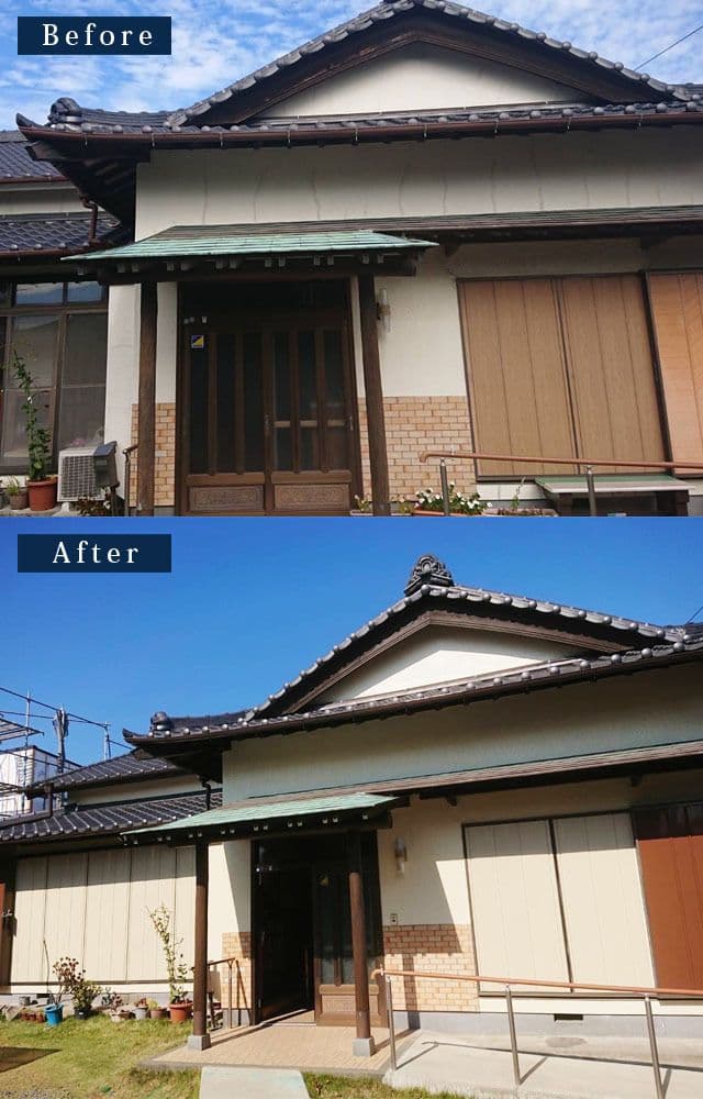 「外壁の塗装のひび割れ部分が目立つようになった」とのご相談を頂きました。今回の塗装により浮き出ていたコーキング部分は目立たなくなり、キレイな仕上がりにご満足いただけました。また、雨戸の色をお任せ頂いたのですが、大変満足いただけました。
